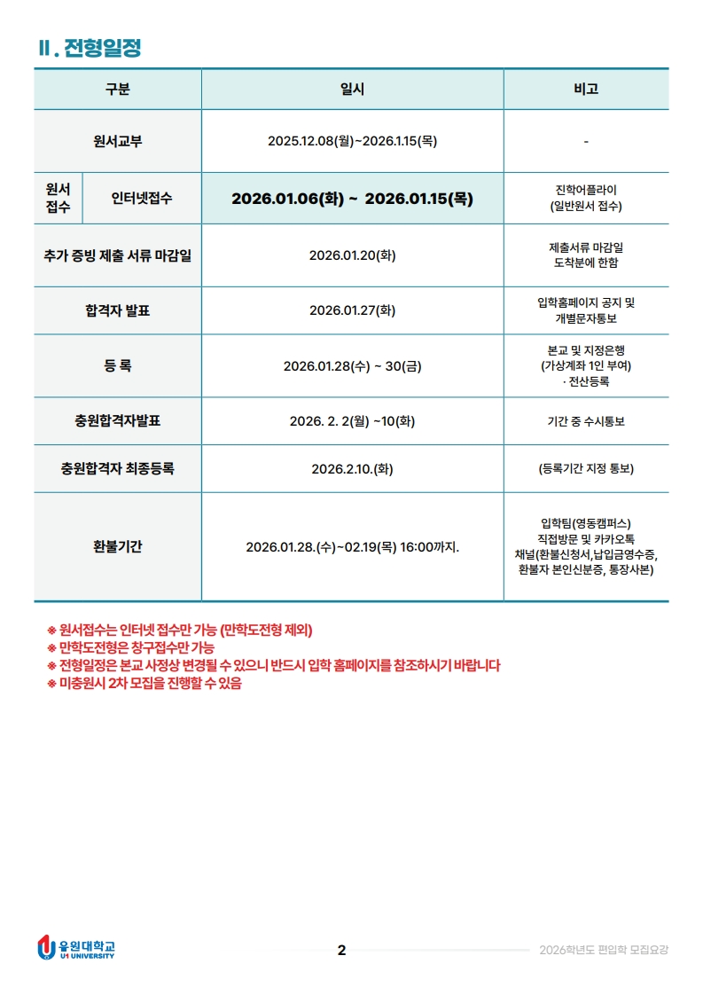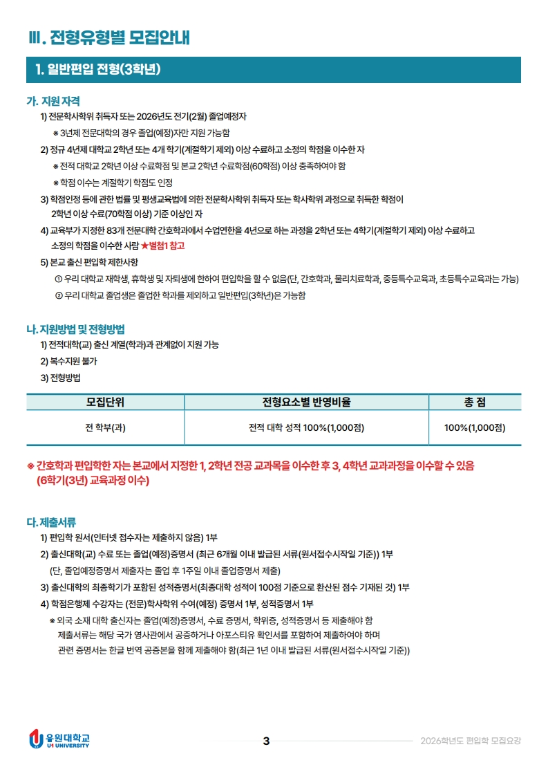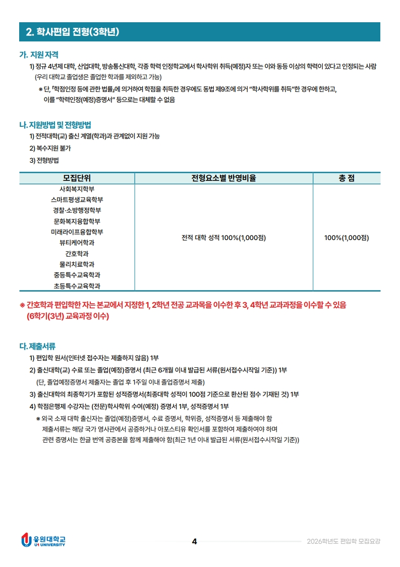 2026학년도 편입학 모집 요강